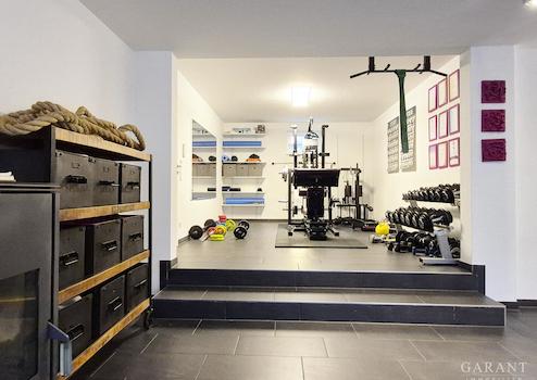 Ein eigener Fitnessraum im Kellergeschoss auf über 50 qm ermöglicht sportliche Aktivitäten unabhängig von Zeit und Wetter, für ein Plus an Lebensqualität im Alltag.