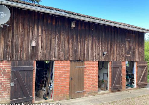 Das von uns im Rahmen eines qualifizierten Makler-Alleinauftrages angebotene Grundstück ist mit einem 1-2 Familienhaus, einem Abstell-Nebengebäude und einer Doppelgarage bebaut. Das schöne Äußere dieses Wohnhauses geht auf die Kaiserzeit zurück. Das Mansarddach wurde 1983 erneuert und es gibt einen Mittelgiebel, Gauben, einen Runderker und 2 Hauseingänge. In den letzten Jahrzehnten wurde das Haus innerfamiliär von 2 Parteien genutzt. Es verfügt über 2 abgeschlossene Wohneinheiten (EG + OG). Natürlich ist es aber auch ebenso als großes Einfamilienhaus nutzbar. Aufgrund der Nebengebäude verfügt diese Immobilie über viel Nebengelaß. Eine weitere Besonderheit besteht darin, daß das Haus zwar im Dorfverbund steht, aber dennoch "für sich" mit recht großem Abstand zur Nachbarschaft.
