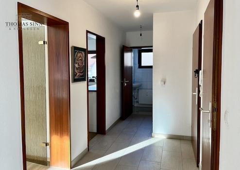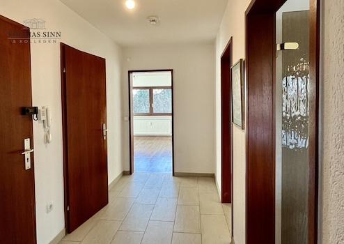 Der einladende Flur bietet viel Platz und verbindet alle Räume der Wohnung. Zeitlose Bodenfliesen sorgen für ein gepflegtes Erscheinungsbild.