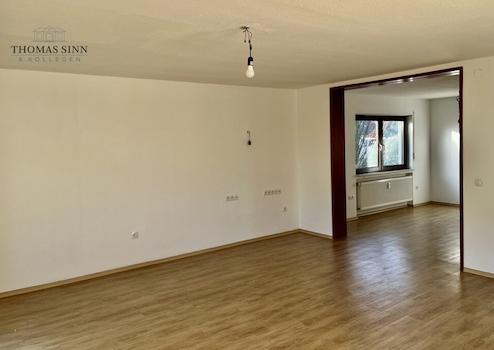 Der helle Wohnbereich ist sehr weitläufig. Die doppelte Fensterfront schafft ein angenehmes Raumgefühl.