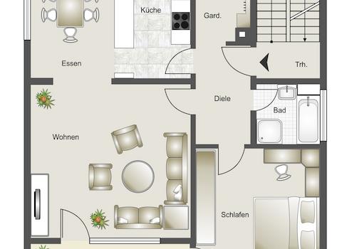 Die Wohnung eignet sich ideal für Singles oder Paare.