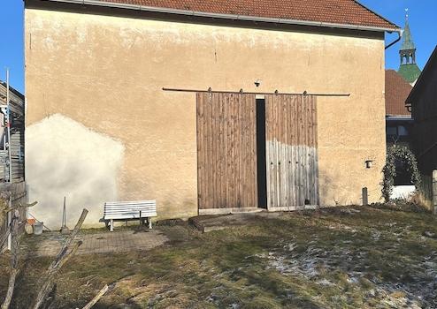 Die auf dem Grundstück befindliche Scheune kann zum Großteil mitbenutzt werden und bietet sich ideal als Lagermöglichkeit oder Werkstatt an. Neben der großen Zufahrt liegt hinter der Scheune noch ein nach Süd-West ausgerichteter Garten. Mit einer gepflasterten Terrasse kann dieser zum Essen und Grillen genutzt werden.