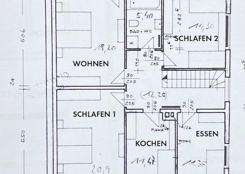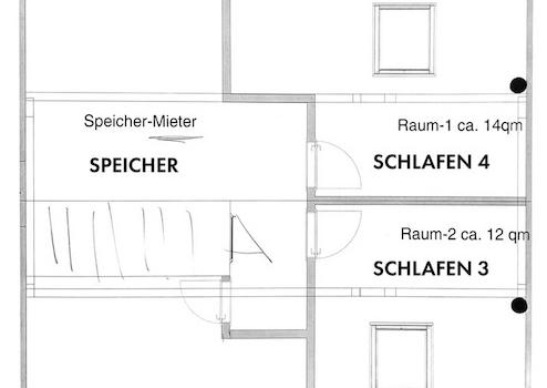 Der Großteil der Wohnfläche befindet sich im Obergeschoss, dort befindet sich Küche, Essen, Wohnen und Schlafen 1 - 2. Im Dachgeschoss befindet sich Schlafen 3 - 4 und ein Dachspeicher als Abstellmöglichkeit. Im Erdgeschoss befindet sich neben dem Vollbad im Obergeschoss noch ein Gäste-WC mit angrenzendem Gäste-Zimmer, welches sich anbietet als solches genutzt zu werden. Das Untergeschoss bietet weitere Abstellmöglichkeiten, sowie eine zentrale Ölheizung.
