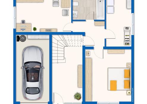 Das Haus verfügt über drei gemütliche Schlafzimmer, die ausreichend Platz für Familie, Gäste oder ein Homeoffice bieten. Eine Garage sorgt für praktischen Komfort.