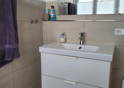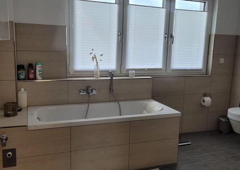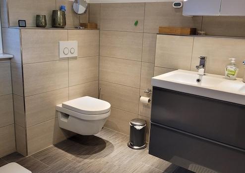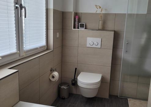 - Böden gefliest oder mit Laminat-Landhausdielen belegt