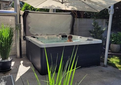 - Wunderschön angelegter, von außen nicht einsehbarem Garten mit teilweise altem Baumbestand, großen Terrassenflächen und einem Whirlpool