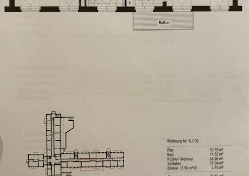 - Aktuell vermietet zu rund 17 €/m²; in der Lage gelten ca. 17–19 €/m² bzw. etwa 1.500 € Kaltmiete als realistisch
