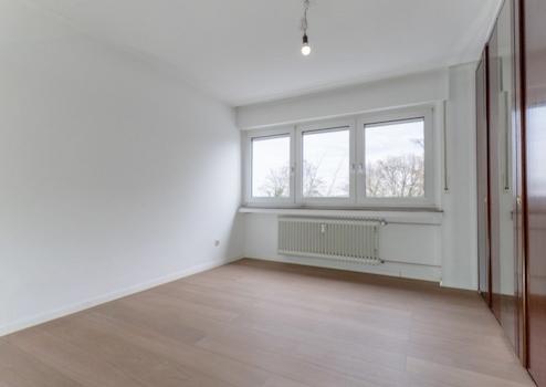 Rechts vom Tageslichtbad erwartet Sie das Hauptschlafzimmer, das genügend Platz für ein Doppelbett sowie einen geräumigen Kleiderschrank bietet. Direkt daneben liegt ein weiteres Zimmer, das sich flexibel als