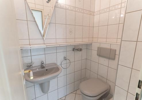 Zurück in der Diele, gegenüber dem Wohnungseingang, befindet sich das Tageslichtbad mit Dusche.
