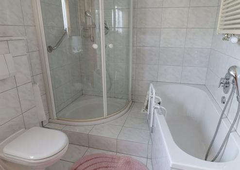 - - 1 Tageslichtbad mit Wanne, Dusche, Waschbecken, WC (EG)