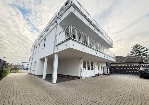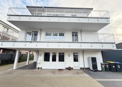 Das moderne Mehrfamilienhaus umfasst drei helle, hochwertig ausgestattete Wohneinheiten, die jeweils zwischen 119 m² und 133 m² Wohnfläche bieten. Große, nahezu bodentiefe Fenster sorgen in allen Räumen für ein lichtdurchflutetes Ambiente und schaffen ein offenes, freundliches Wohngefühl.