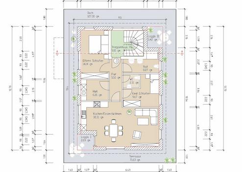 - KfW 55 EE-Energieeffizienzhaus – besonders sparsame Bauweise, die für niedrige Heiz- und Nebenkosten sorgt.
