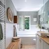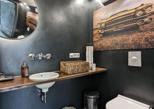 • 3 Bäder, 3 Gäste-WCs, neu gestaltetes Bad im Retro-Design mit Badewanne und bodengleicher Dusche in der Hauptwohnung.