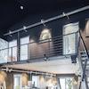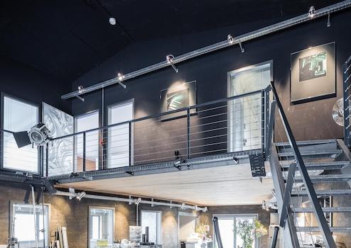 • Halle & Büros im EG: 249 m², mit ebenerdiger Autoeinfahrt, (Sektionaltor: 3,12 m × 2,41 m), ursprüngl. als Fotostudio genutzt, im stylischem Industrie-Loft-Charakter, ursprünglich voll verglaste Nordseite der Halle, (wäre bei Bedarf wiederherstellbar).