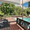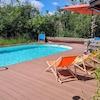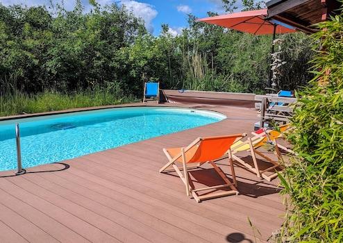 Das Highlight sind der von außen nicht einsehbare Pool und eine Gartensauna mit Dusche, die absolute Privatsphäre versprechen.
