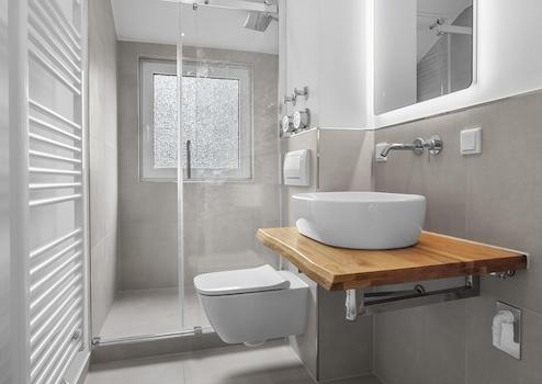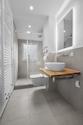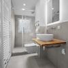 • Badezimmer: Das sanierte Badezimmer verfügt über eine begehbare Regendusche mit Glaselement, einen Handtuchheizkörper und moderne Decken-Spots.