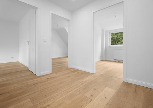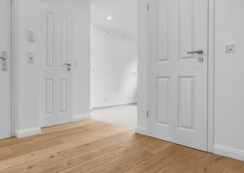 • Wände und Türen: Neu verputzte und weiß gestrichene Wände, neue Zimmertüren sowie schönes weißes Hamburger Leistenprofil in den Wohnräumen.