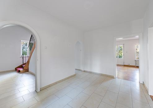 Das Haus überzeugt schon beim ersten Anblick mit seiner klassischen Architektur und der liebevoll bewahrten Handschrift vergangener Jahrzehnte. Im Inneren entfaltet sich ein besonderes Wohngefühl: Der großzügige Wohnraum mit Kamin und das charaktervolle alte Parkett laden dazu ein, den Alltag hinter sich zu lassen und entspannte Stunden im Kreis der Familie zu verbringen. Große Fenster öffnen den Blick in den Garten und schaffen eine harmonische Verbindung zwischen Innen und Außen.