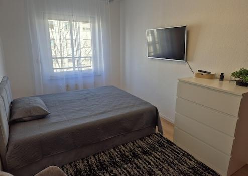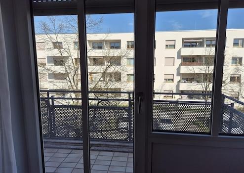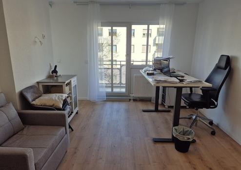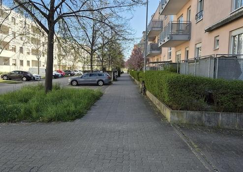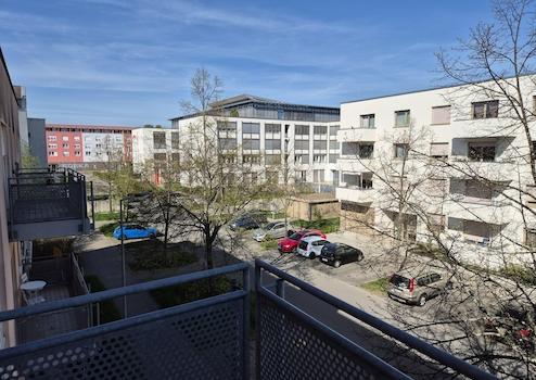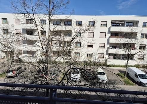 Helle 2 Zimmer Wohnung in Karlsruhe-Oberreut direkt neben der Badenia Bausparkasse, 2 Minuten von der Badenia Straßenbahnhaltestelle und 2 Minuten vom EDEKA entfernt.