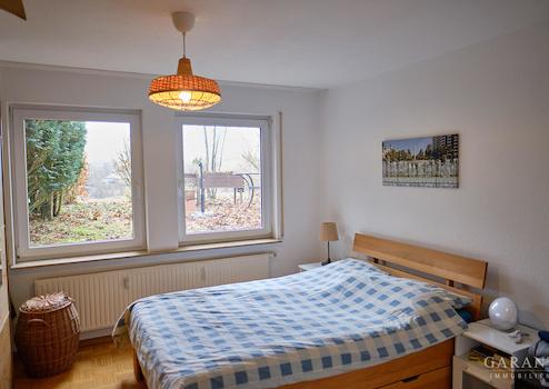 Die Wohnung befindet sich in bevorzugter, ruhiger Wohnlage, vom Schlafzimmer aus blickt man aufs Grüne und Felder.