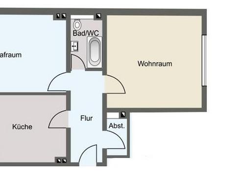 - Wohn- und Esszimmer, Schlafzimmer, Küche mit kleiner Abstellkammer, Flur mit Garderobe, Kellerraum