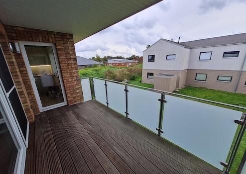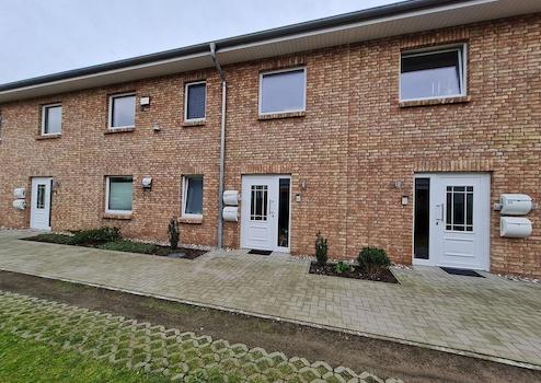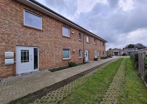 Die Wohnung befindet sich im Obergeschoss eines neuwertigen, gehobenen 6-Parteien-Mehrfamilienhaus, Baujahr 2016, in einem Neubaugebiet in ruhiger aber zentraler Lage von Husum. Eine Stadtvilla mit zwei Vollgeschossen, die in Massivbauweise und KfW-55-Standard hergestellt wurde. Das Haus besteht aus 3 Hausscheiben, je eine Wohnung im EG und eine Wohnung im OG teilen sich ein Treppenhaus. Jede Wohnung verfügt über eine eigene Sole-Wärmepumpe (Erdwärme) mit sehr geringen Verbrauchskosten (ca. 35€/Monat f. Strom) sowie einer Sensor-gesteuerten Lüftungsanlage.