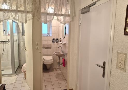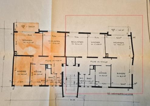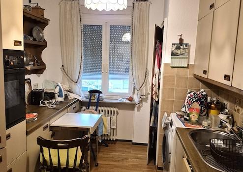 Aktuell befindet sich die Eigentumswohnung im renovierungs- und sanierungsbedürftigen Zustand. Die Installationen sind überwiegend aus dem Baujahr. Bad und Gäste-WC wurden bereits überarbeitet und 2023 wurden im gesamten Objekt die Eingangstüren erneuert und das Treppenhaus neu gestrichen.