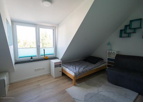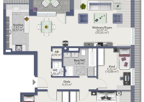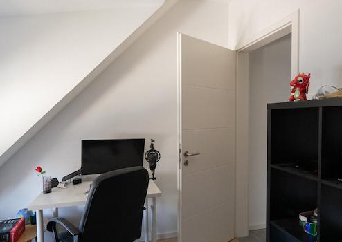 Der individuelle Grundriss bietet eine Diele, eine offene Küche, ein Wohn- und Esszimmer, eine Abstellkammer, eine Gäste-Toilette, ein Tageslicht-Bad, ein Schlafzimmer und zwei Kinderzimmer. Die westlich ausgerichtete Dachterrasse ist über das Wohn- Esszimmer erreichbar. Die West-Lage ist ideal für Berufstätige, um den Feierabend an warmen Sommertagen entspannt ausklingen zu lassen. Hier genießen Sie Ruhe und finden Ihren wohlverdienten Abstand zum Alltag.