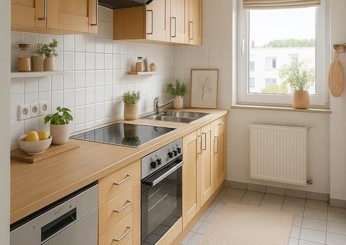 Die Wohnung überzeugt durch einen praktischen Grundriss: ein helles Wohnzimmer mit Zugang zum sonnigen Balkon und Weitblick, ein Schlafzimmer sowie ein flexibel nutzbares drittes Zimmer. Das modernisierte Tageslichtbad (2020), die erneuerten Fenster (2009) sowie solide Bodenbeläge reduzieren Instandhaltungsrisiken deutlich. Ein Kellerraum sowie gemeinschaftlich genutzter Wasch- und Fahrradkeller sind vorhanden.