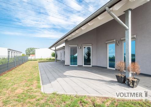 - offener Wohn- Essbereich mit Zugang zur teilüberdachten Terrasse und dem Garten
