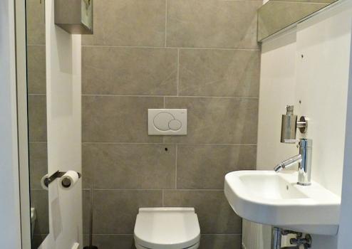 Der nach Süd-Westen ausgerichtete Wohn- und Essbereich ist durch einen imposanten Türbogen voneinander getrennt und wird durch große Fensterflächen mit viel Tageslicht versorgt. Das großzügige Badezimmer verfügt über eine freistehende Badewanne und eine extra große Dusche. Das separate WC befindet sich gleich nebenan.