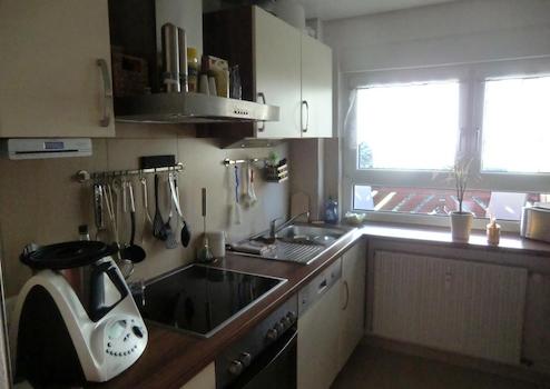 Balkon, Keller, Duschbad, Einbauküche, Laminat, Fliesen