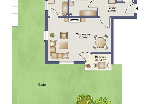3-Zimmer-Gartenwohnung mit Kachelofen