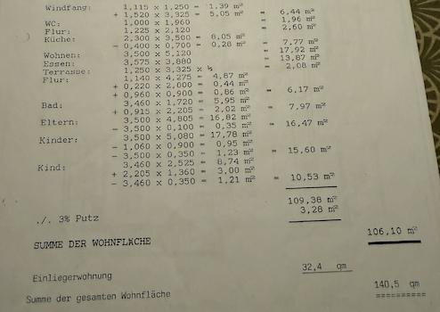 Mit einem Hauptwohnteil im Erdgeschoss und 1. Obergeschoss mit 106 m ²Wohnfläche und einer kleineren eigenständigen Einliegerwohnung mit eigenem Zugang im Soutterrain mit ca. 33 m ² .