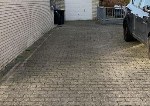 Weiß verklinkerte Doppelhaushälfte in einer ruhigen, gepflegten Umgebung.