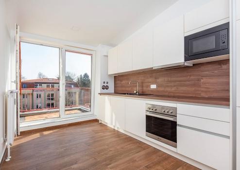 Wohnküche mit moderner Einbauküche & Balkonzugang