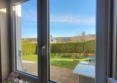 super schöne 1-Zi Wohnung im EG mit eigener Wiese, großer Terasse, abgetrennt mit schöner Hecke.
