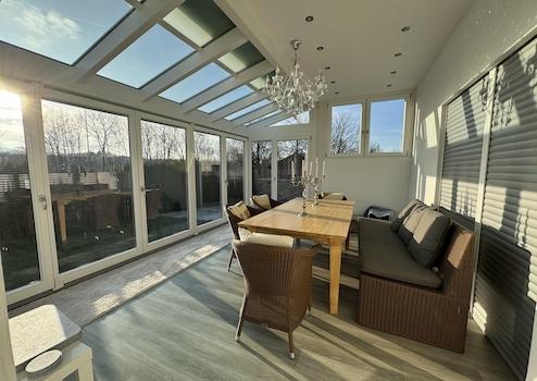 • Wintergarten mit Falttüranlagen und Beschattung