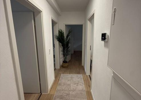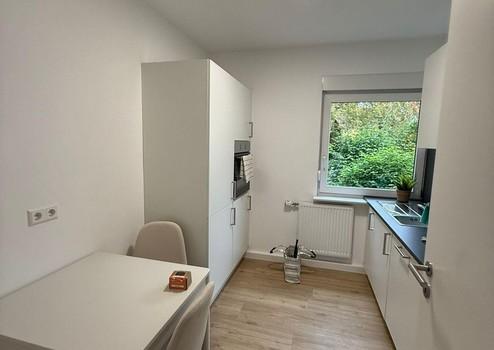 Zur gemeinschaftlichen Nutzung steht ein frisch saniertes Badezimmer sowie eine hochwertige Einbauküche mit kompletter Ausstattung (inkl. Koch- und Essgeschirr) bereit. Ein Waschtrockner ist ebenfalls in der Wohnung vorhanden und erleichtert den Alltag.
