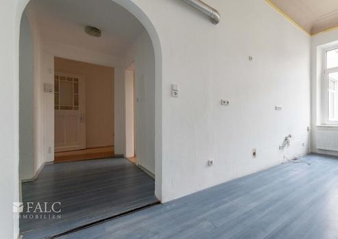 Die angebotene Wohnung befindet sich in zentraler Lage von Krefeld-Mitte im 1. Obergeschoss eines Mehrfamilienhauses. Sie bietet großzügige Raumverhältnisse und vielseitige Gestaltungsmöglichkeiten. Die Wohnung verfügt über drei Schlafzimmer, wovon eines als Durchgangszimmer ausgeführt ist. Herzstück ist die geräumige Küche, die ausreichend Platz für einen Essbereich bietet. Das helle Wohnzimmer wird durch ein charmantes Erkerzimmer ergänzt, das sich ideal als Arbeits- oder Leseecke eignet. Zwei Flure strukturieren die Wohnfläche und sorgen für eine gute Raumaufteilung. Das Badezimmer bietet Potenzial für eine moderne Neugestaltung, WC und Bad sind separat angeordnet. Ein Kellerraum gehört ebenfalls zur Einheit.