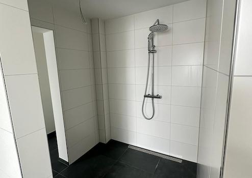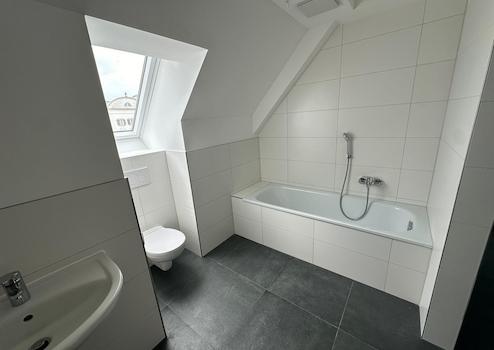 Ein modernes Bad mit zwei Zugängen – eines mit Badewanne, eines mit bodentiefer Dusche – sowie eine Einbauküche runden die Ausstattung ab. Der hochwertige Bodenbelag in Holzoptik, helle Räume und die zeitgemäße Ausstattung schaffen ein attraktives Wohnambiente, das sofort bezogen werden kann.