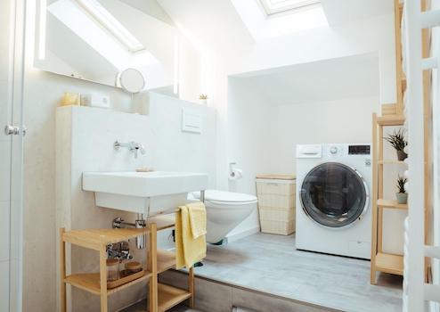 Das Badezimmer wurde komplett erneuert und bietet nun eine moderne Duschkabine sowie ausreichend Platz für eine eigene Waschmaschine.
