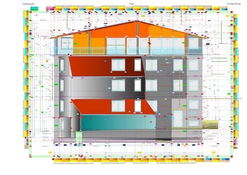 Das Kellerwerk wird massiv, die Wohnetagen werden als Holzständerwerk hergestellt.