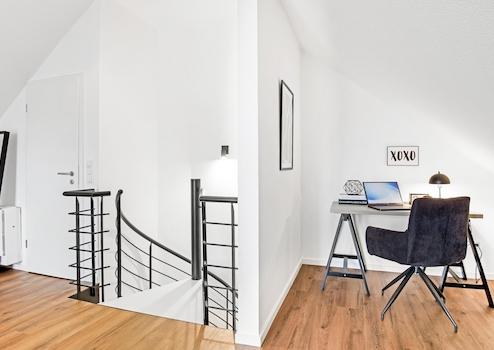 Die Wohnung besticht durch lichtdurchflutete Räume und hochwertige Bodenbeläge, bestehend aus Design-Vinyl in den Wohnbereichen und stilvollen Fliesen im Badezimmer, in der Diele sowie im eigenen Treppenhaus. Für alle, die ein modernes und komfortables Zuhause in Havixbeck suchen, ist diese Wohnung die ideale Wahl!
