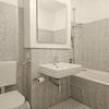 Im Badezimmer gibt es eine Badewanne, WC, Handtuchhalter und einen Waschmaschinenanschluss.