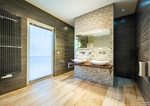 - Tageslichtbad mit ebenerdiger Dusche und Badewanne,