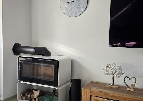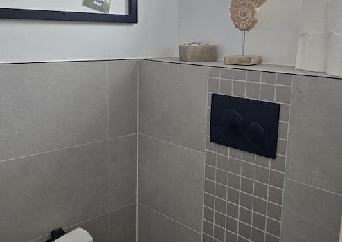 Ebenso der Designkamin NP 14.000 Euro im Wohnzimmer. Das Gäste WC wurde ebenso 2023 saniert ist mit hochwertiger schwarzer Keramik versehen worden.