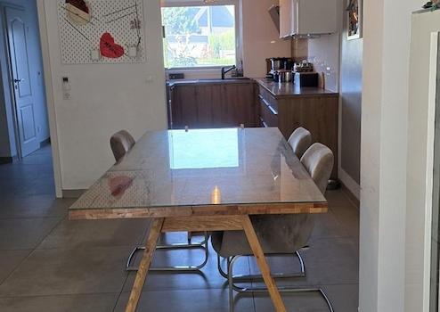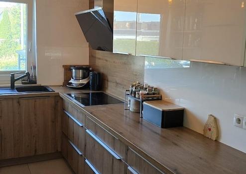 Im EG wurde eine Fussbodenheizung ( mit digitalen Wandrhermostaten) mit neuem Estrich verbaut. Neue großformatige Fliesen verlegt. Eine hochwertige Nolte Küche von 2023 NP 15.000 Euro kann je nach dem übernommen werden .