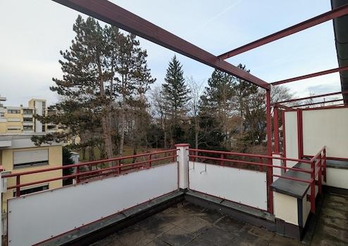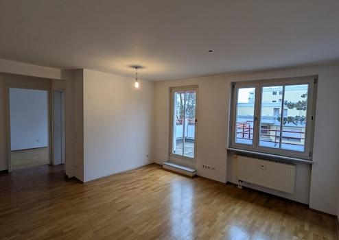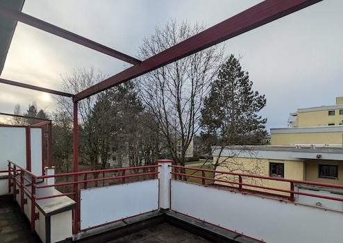Aus dem Wohnzimmer ist der große Balkon/Dachterasse über eine Tür erreichbar.