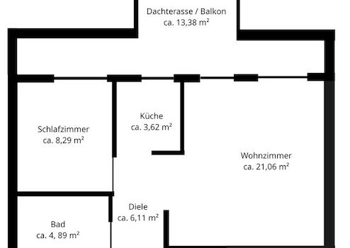 Der Grundriss ist perfekt für eine alleine wohnende Person.